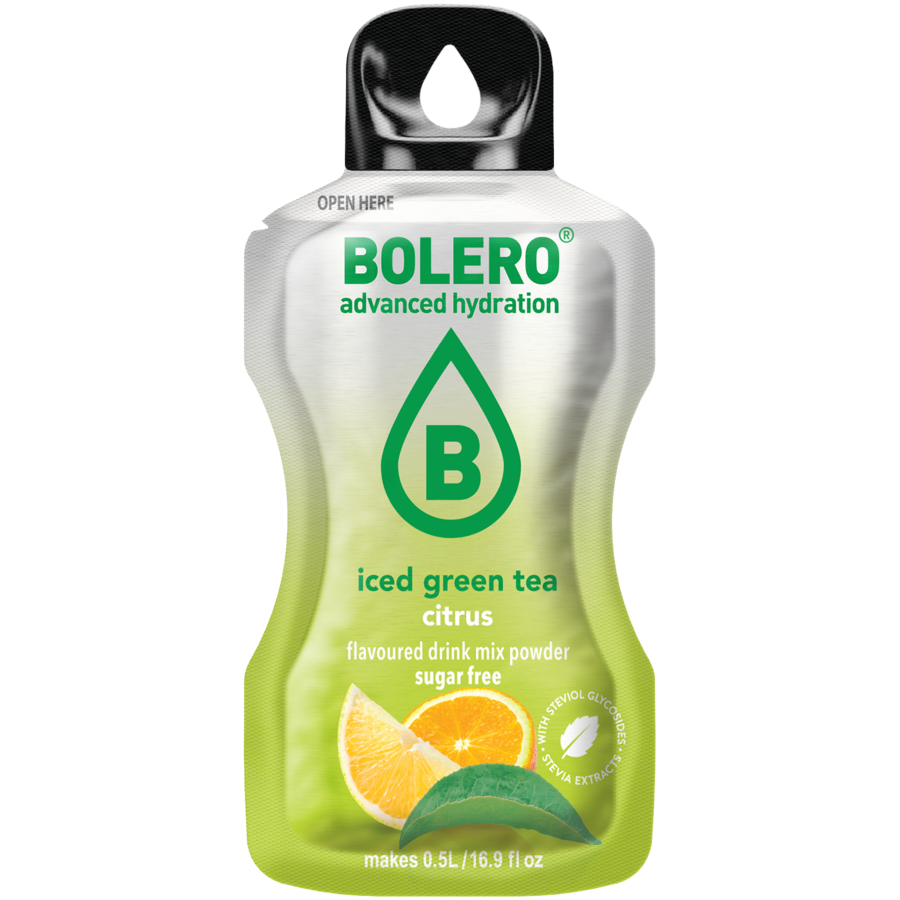 Bolero® Iced Green Tea Citrus combines the healthy benefits of green tea with the vibrant freshness of citrus fruits. The result is an invigorating thirst-quencher that hydrates you, gives you a light energy boost, and gives you an instant summer feeling.
