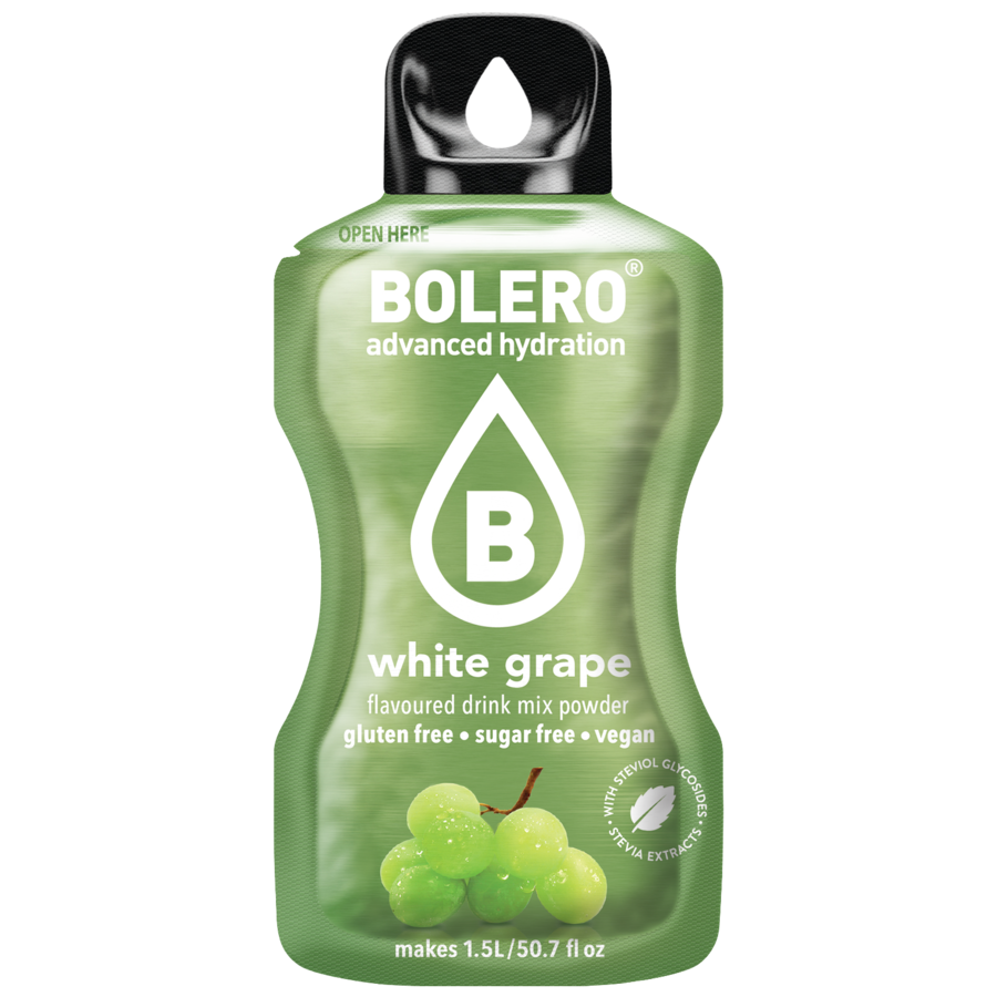 Be surprised by the fresh and fruity taste of Bolero White Grape . This sugar-free powdered drink combines the sweet aroma of white grapes with an invigorating freshness – perfect for any time of day.